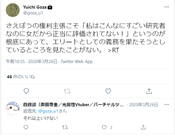 ぐらいのニュアンスだと思うが、顔の皮に一定の厚みがあれば「本気で真剣に呉座さんを止めたんですが?勝手に深読みして悪意に取るのはどうなの?」とすっとぼけることが可能だ。